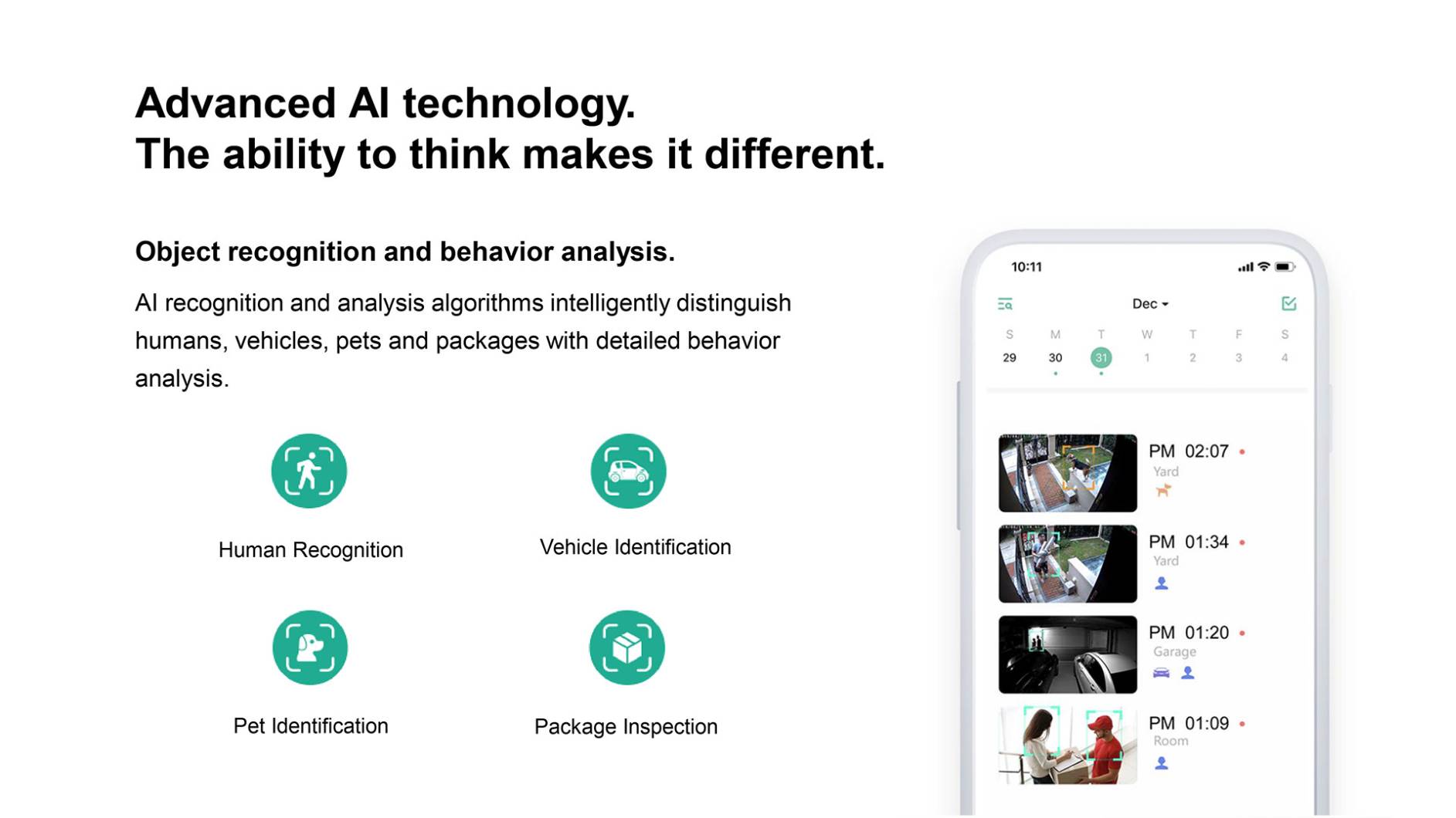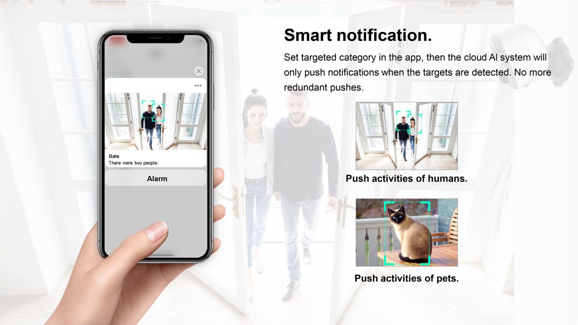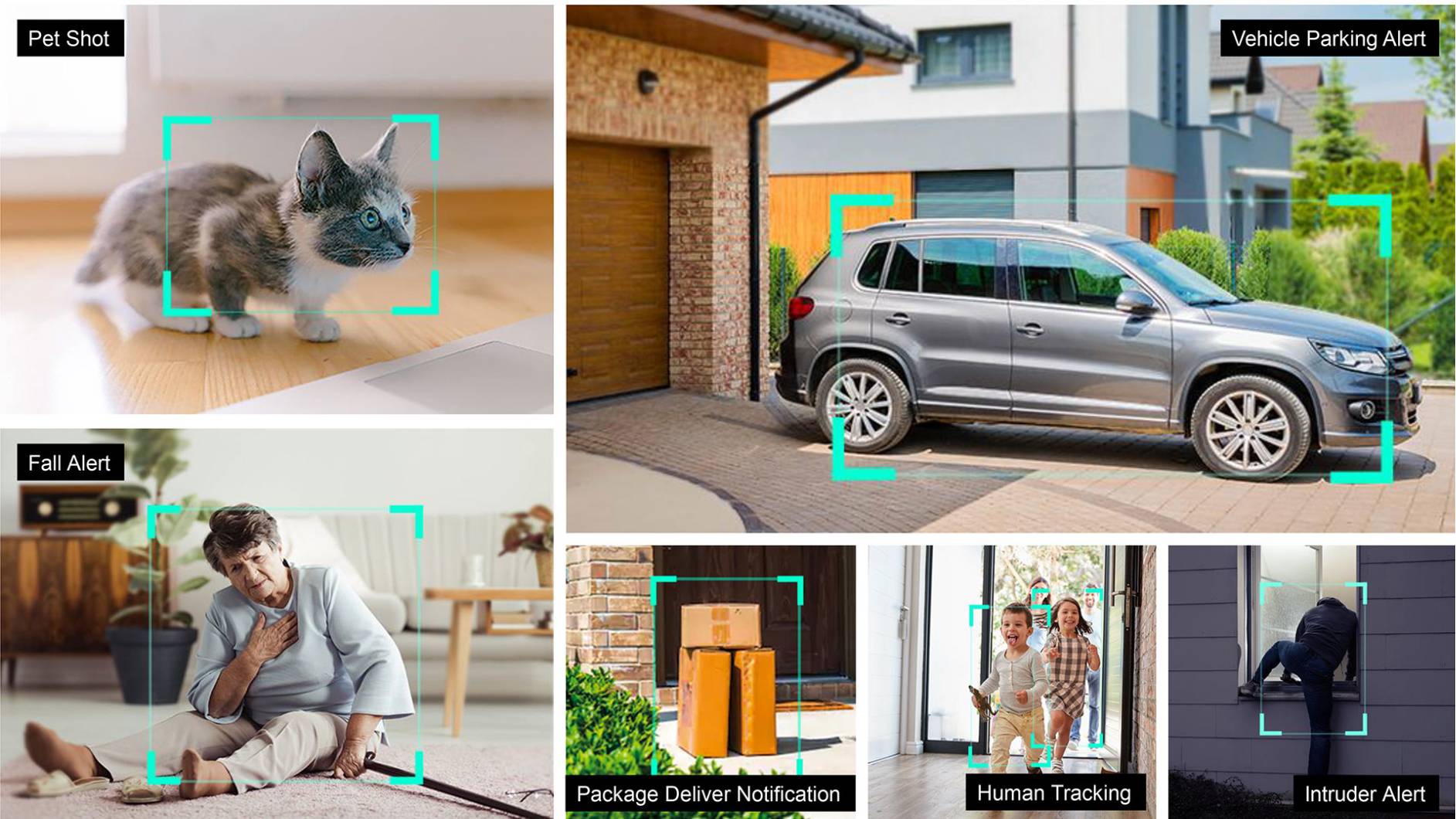 | AI | Intelligent Features | Human contour detection, activity zone,intelligent push, pet snapshot,Package inspection |