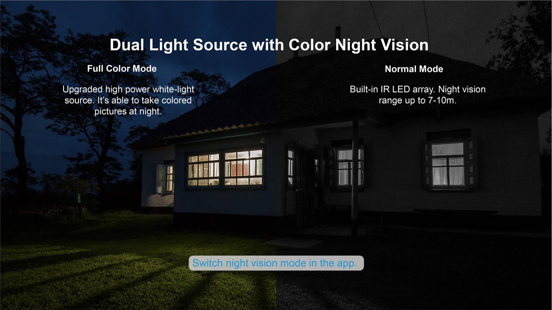 | Light Source for Night Vision | IRCUT double optical filter automatic switching, and 8 infrared lights (850nm wavelength)Irradiation distance: 7M | |